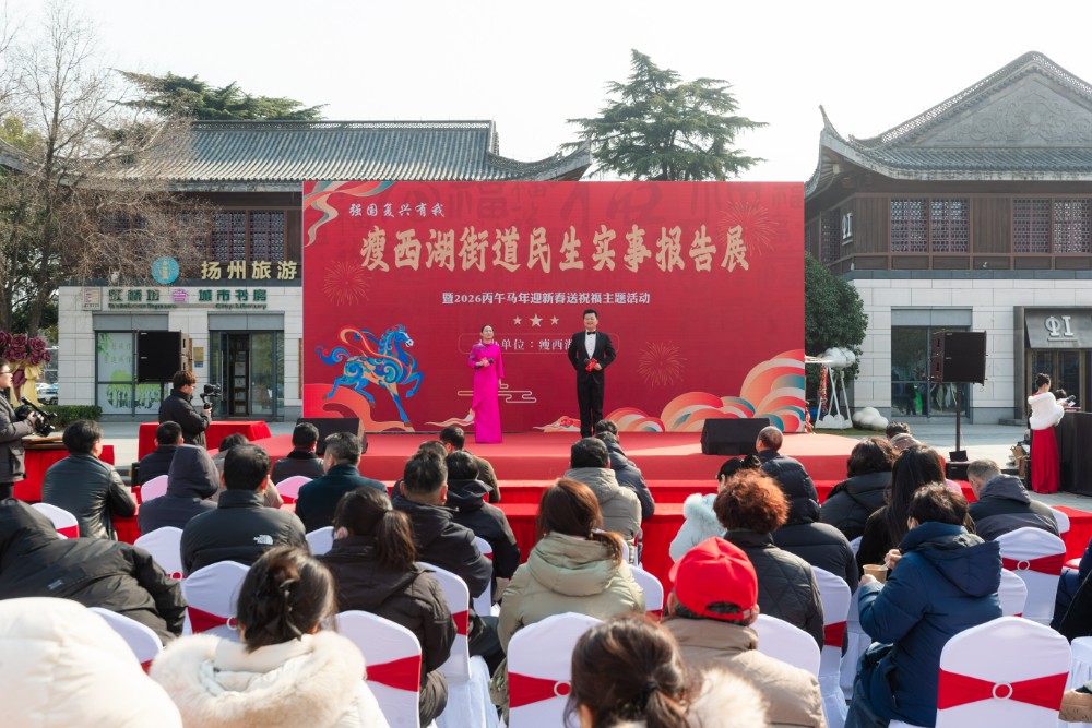 中国江苏网讯 冬日暖阳照古城,民生画卷映初心。为全面展示“十四五”期间瘦西湖街道民生实事成果,绘就未来发展蓝图,在新春佳节即将来临之际,瘦西湖街道隆重举办“民生实事报告展暨2026丙午马年迎新春送祝福”主题活动。街道党政领导班子、机关干部、村社区工作人员、居民代表等齐聚一堂,共同回眸过往的奋斗路,开启充满希望的“策马”新征程。
