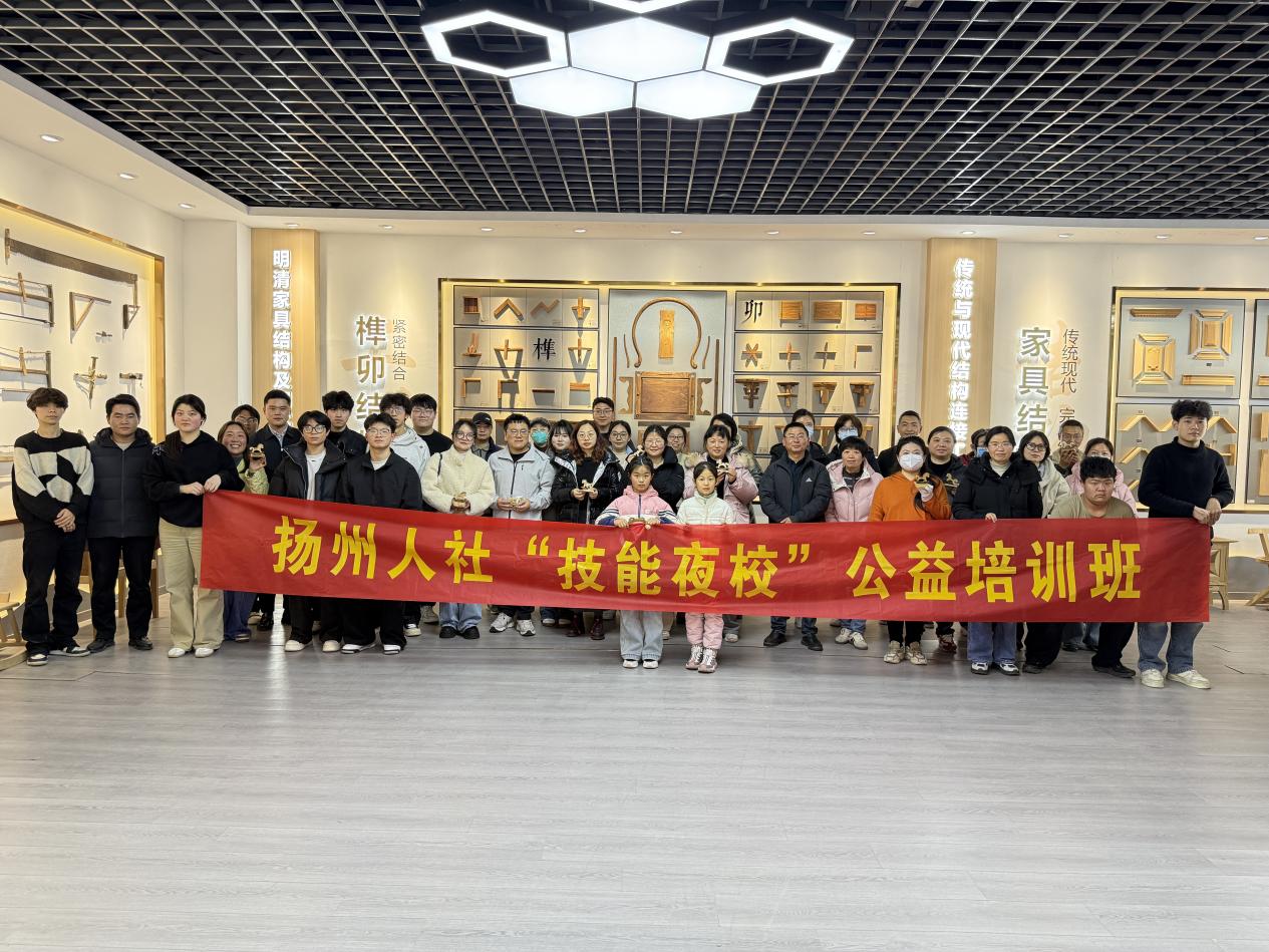 中国江苏网讯 为破解上班族职业技能提升的“工学矛盾”,江苏省人力资源和社会保障厅创新推出“技能夜校”系列课程,以“‘夜校’助‘就’美好前程”为主题,将人社服务与职业技能提升阵地从白天延伸至夜晚、从工作日拓展至休息日、从人力资源市场辐射至学校社区,切实打通就业帮扶与职业技能提升的“最后一公里”。3月17日,由扬州市人力资源和社会保障局主办、江苏省扬州技师学院承办的鲁班手工木工“技能夜校”第一期培训班在学校家具制作实训基地正式开班,全市40余名学员齐聚一堂,开启传统木工技艺的传承学习和技能提升之旅。