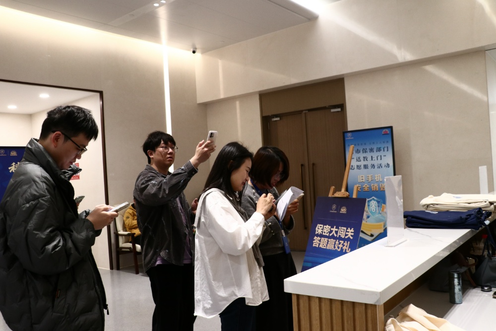 在保密技术“体检”环节,专业技术人员携带专业检测设备,为参会单位提供移动办公环境涉密风险检测及预约服务。最受关注的当数“手机安全销毁”服务点——技术人员现场演示,将废旧手机放入物理粉碎机,经过消磁处理,数据彻底“灰飞烟灭”。一单位工作人员还带来了几个废旧手机销毁,她说“一直不敢随便扔,今天终于可以放心了。”