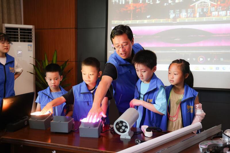 市路灯管理处的活动同样科技感十足。在“红色港湾·先锋驿站”四牌楼站点,前来参加活动的20名青少年在工作人员的带领下,开启了一场别开生面的城市照明知识探索之旅。通过有趣的互动形式,孩子们了解到从原始的煤油路灯到现代智慧路灯的演变历程,认识了集多种功能于一身的智慧路灯系统。一些学生不时称赞:“没想到智慧路灯既能达到节能减排的功效,还能同时具备这么多功能!”工作人员还在活动过程中讲解了用电安全知识,进一步强化孩子们的用电安全意识。
