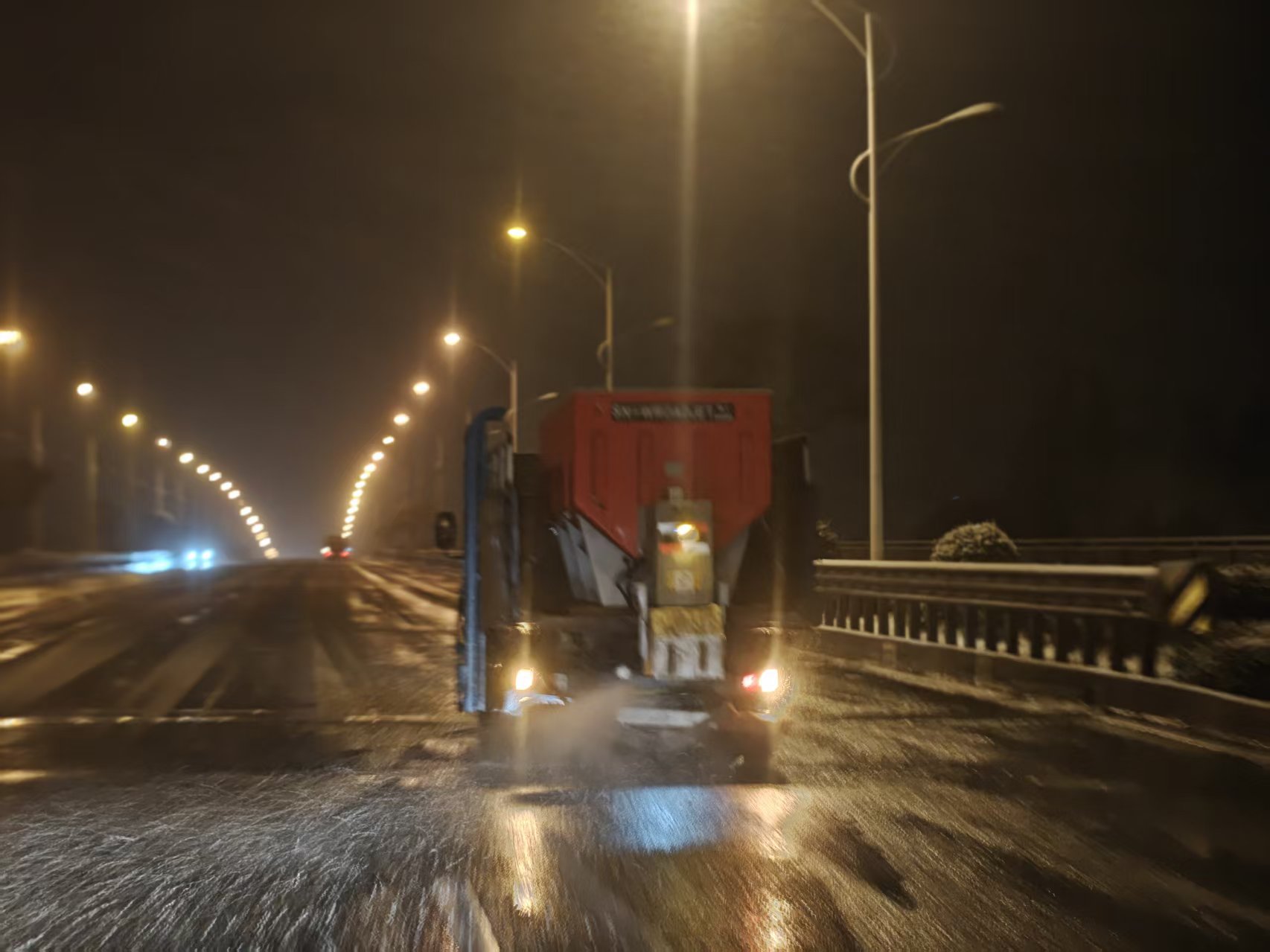 随着新年钟声的敲响,本市迎来2026年的首次降雪。1日凌晨3时许,雪花如期飘落。市环卫中心“以雪为令”,迅速吹响集结号,按照预案采取“机械+人工”协同处置模式,组织市区环卫力量有序开展除雪作业。机械作业队伍率先出动,对高架、桥梁、坡道及主要出入城通道等进行融雪剂撒布作业,及时防止道路结冰。