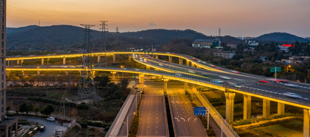 在南门汽车客运站,洗墙灯勾勒的建筑轮廓与玻璃幕墙上“I♥ZJ”的光影字幕交相辉映,既展现了城市的现代活力,又传递着镇江人的家乡情怀;五凤口高架桥上,5000余套2700K暖光线性洗墙灯将桥腹映照成盛开的莲花,300余套加装防眩光灯罩的投光灯保障行车安全,让驾驶者在舒适的光影环境中感受城市的美感。