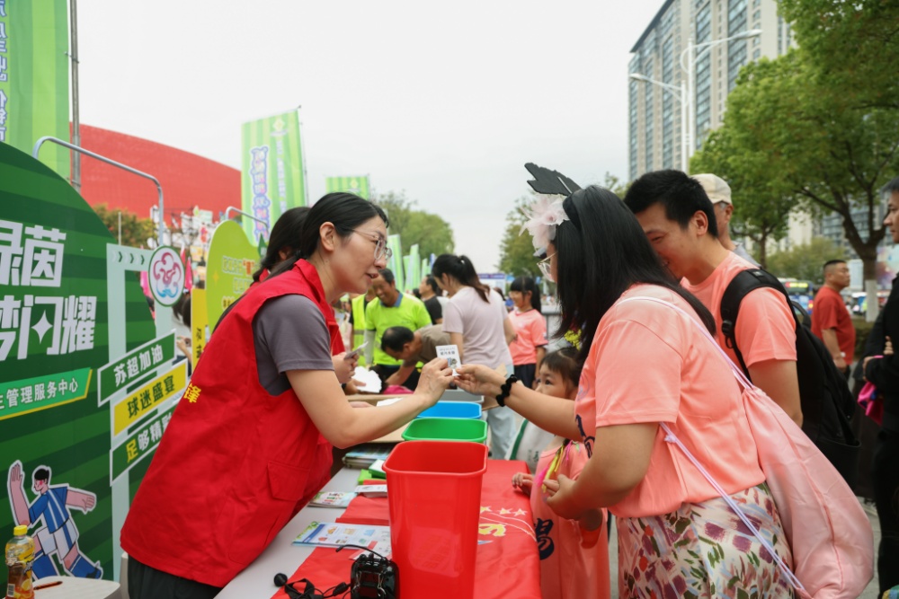 随着工作推进,志愿服务的场景不断拓展,形式持续创新。2025年8月,志愿者们走进镇江市中级人民法院,开展“垃圾分类进机关”宣传活动,针对办公场景中易混淆的垃圾品类进行详细解读,有效提升机关干部职工带头践行生活垃圾分类的自觉性。同年9月20日,围绕“苏超”联赛镇江队主场收官之战,镇江环卫中心策划开展了“垃圾分类‘镇’在行,绿色赛场共守护”主题活动,将足球运动的激情与环保理念巧妙结合,在赛场外设立宣传点位,通过互动游戏、知识问答等形式,让观众在感受足球赛事魅力的同时,轻松接纳绿色低碳的生活新风尚。