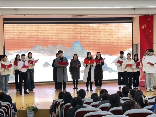 随后,五位青年教师代表依次登台,带来各具特色的育人故事。黄妍老师以“新闻联播”形式讲述肖月老师与学生并肩同行的陪伴与守护;刘姝老师分享米彦婕老师在团队协作中共同进步的成长感悟;陈诺老师诉说曹雨渲老师面对教学难题时的突破与成长,传递不惧挑战的教育勇气;唐朝老师诠释汤温琴老师如何在严谨教学中融入人文关怀;邢雯清老师则以快板形式展现李家静老师与学生心灵碰撞的育人智慧。