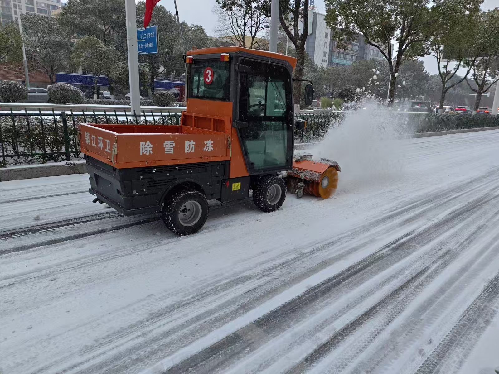 截至20日上午9时,镇江主城区环卫部门累计出动人员2300余人,出动撒布机、滚刷车、铲刀车等各类专业作业车辆50余台,使用融雪剂90余吨、铺设草垫12000余条。
