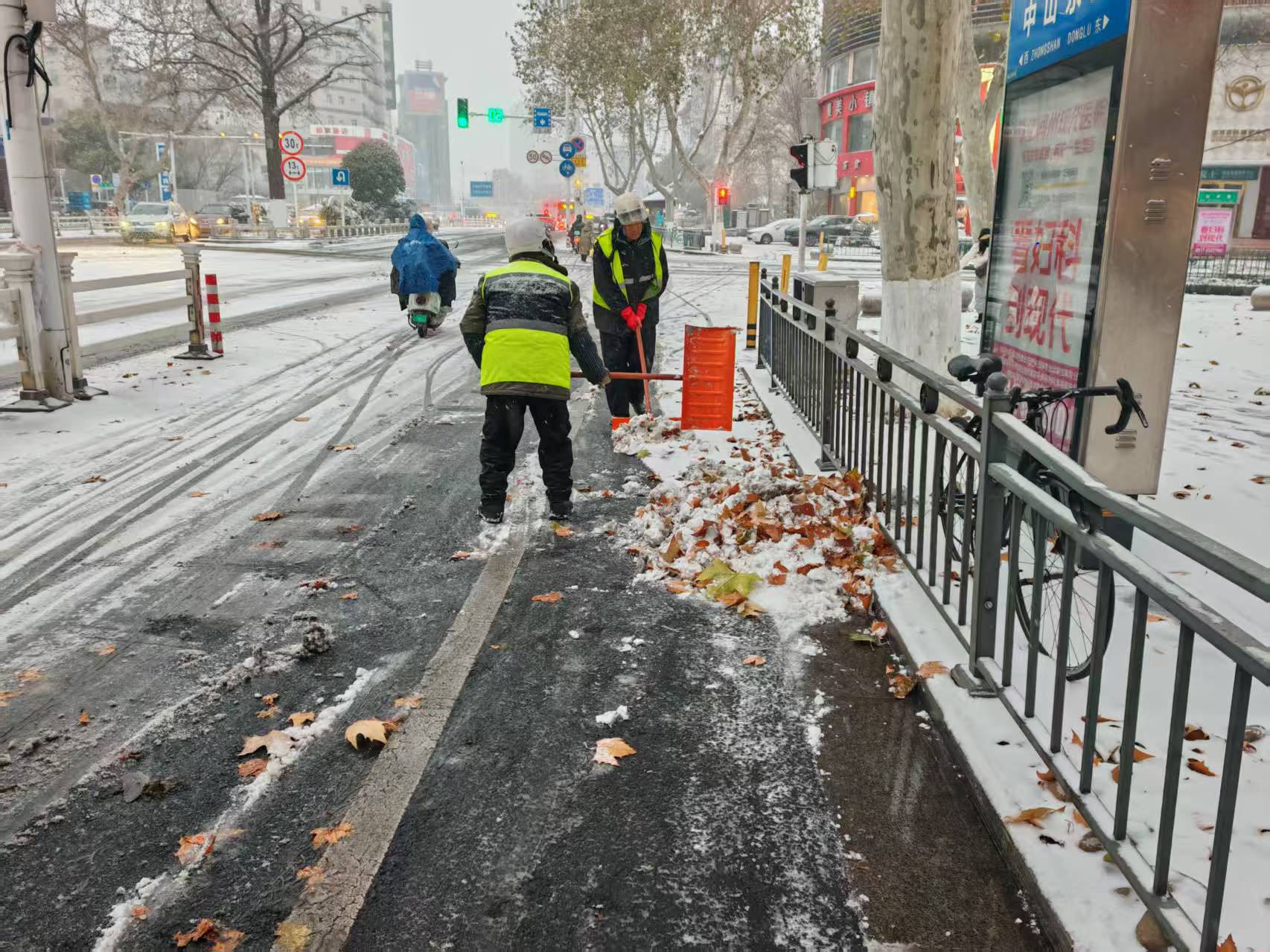 风雪弥漫处,除雪守平安。市环卫中心相关负责人表示,根据气象部门预报,本轮降雪20日上午将渐止。下一步环卫部门将持续密切关注天气变化,主动担当、冲锋在前,全力做好路面冰雪的后续清理与防滑保障;同时环卫应急队伍将针对近日持续低温可能出现的二次结冰情况,加密巡查频次、强化处置力度,努力营造安全、整洁的道路出行环境。在此也提醒广大市民:雨雪冰冻天气路面湿滑,请大家驾车注意减速慢行,出行注意防滑保暖,主动避让清雪作业人员与车辆。风雪中,让我们携手同行,共护平安!