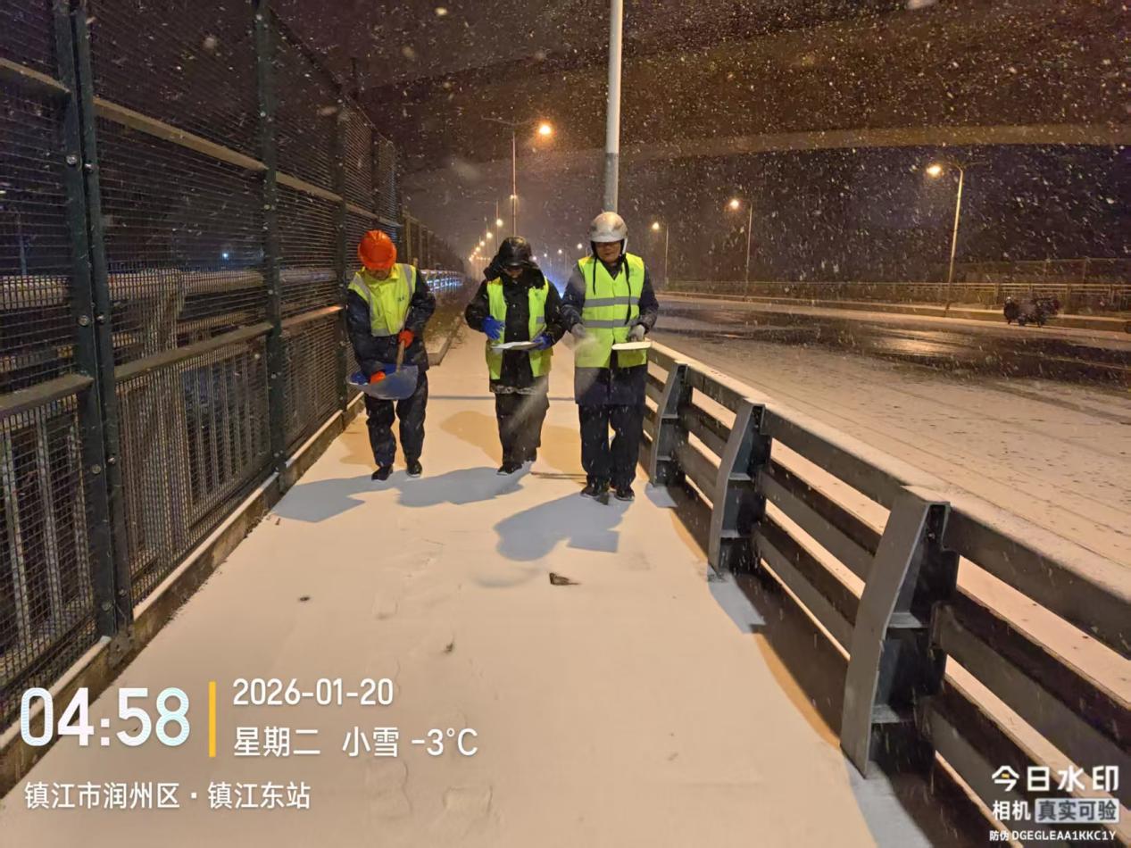 雪情就是命令,防控刻不容缓。丹阳市城管局第一时间启动扫雪除冰应急预案,针对云阳大桥、人民大桥等大型桥梁,以及东方红桥、尹公桥等小型桥梁的快慢车道、人行道易结冰的特点,提前撒布环保融雪剂,同步覆盖城区主干道、医院、学校、交通枢纽等关键区域,全力打通群众出行关键节点。针对路面结冰较厚路段,组织环卫工人追加融雪剂撒布量,加速冰雪消融;同时组建50人应急突击队,实行24小时待命制度,确保突发雪情快速响应、高效处置,坚决筑牢道路通行安全屏障。