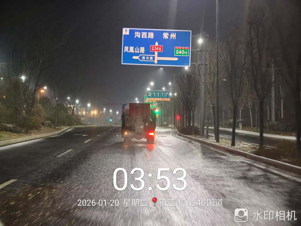 风雪将至,备战先行。1月19日下午,镇江市环境卫生管理服务中心提前完成除雪人员与车辆集结,对桥梁路段、堤坡路段及事故易发路段等重点部位,于21时起组织撒布机提前上路抛洒融雪剂,防范路面积雪结冰隐患。20日清晨雪量加大后,市环卫中心加强统筹调度,立即启动“机械为主、人工为辅”联动作业模式:大型设备主攻主次干道,高效清理积雪;小型扫雪机灵活穿梭于非机动车道、人行道等大型设备难以到达区域,实现全覆盖清理。同时组织市区环卫工人于20日5时前提前到岗,对非机动车道、人行道、背街小巷等区域进行人工抛洒融雪剂和铲雪除冰,及时消除道路安全隐患,清扫出安全出行的“绿色通道”。市环卫中心相关负责同志表示,目前全市本轮降雪虽然已经结束,但据气象部门预报,21日全市大部分街道(镇)将出现对交通有较严重影响的道路结冰。针对后续可能出现的持续低温天气与道路结冰风险,市环卫中心将加密路面巡查频次、强化应急处置力度,全力维护整洁安全的道路出行环境。在此,也温馨提醒广大市民朋友,遇有低温冰雪天气出行,请尽量选择公共交通工具,自驾或骑电动车出行要按照交警部门提示,自觉遵守交通秩序,保持安全车距,在湿滑结冰路段要减速慢行或尽量选择推行,防止各类交通事故发生,确保出行安全通畅。