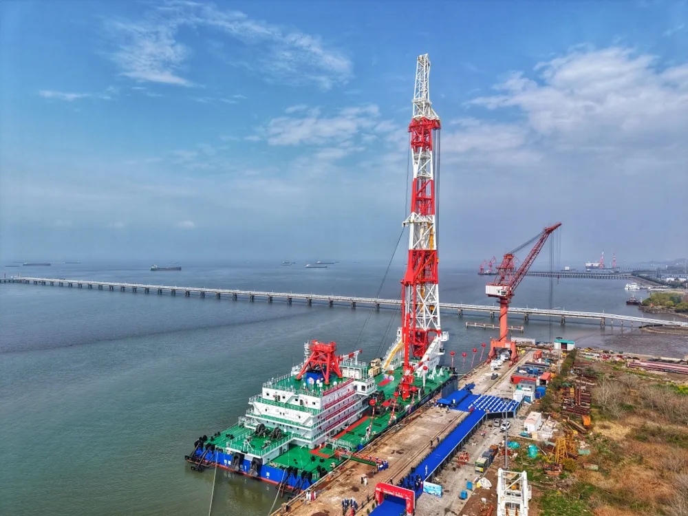 3月31日上午,扬中市西来桥镇龙头企业江苏大津重工有限公司为中国铁建大桥工程局集团有限公司建造的全球最大打桩船“铁建大桥桩1”号,在大津重工南通基地正式交付。该船创下“桩架高度最高、作业水深最深、吊桩能力最大”三项世界领先纪录,标志着我国在海洋工程装备制造领域实现新突破。