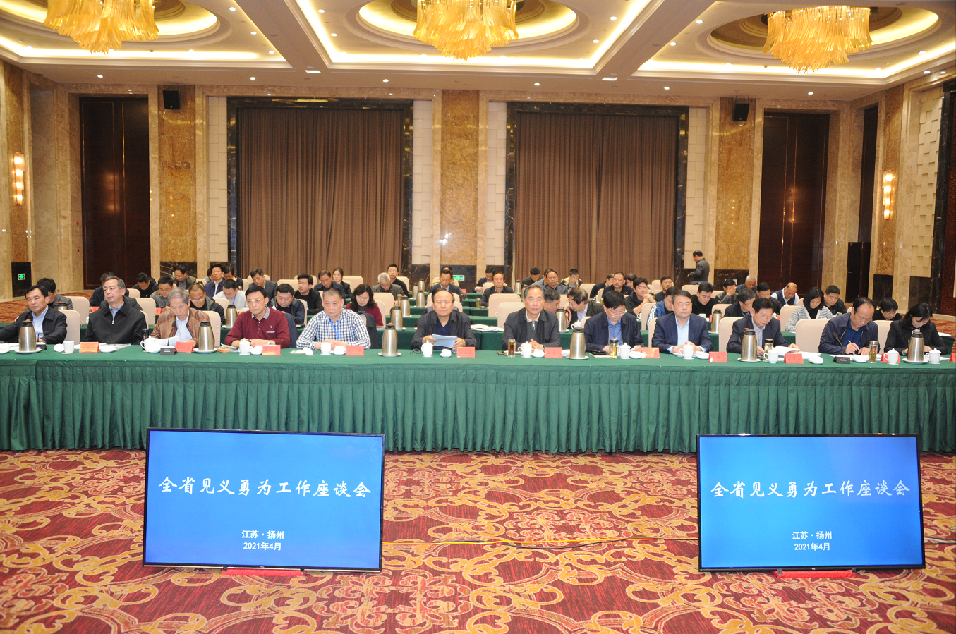 4月22日至23日,全省见义勇为工作座谈会在扬州召开,会议深入学习贯彻习近平总书记视察江苏重要讲话指示,以及省委书记娄勤俭、省长吴政隆批示要求和全省第十二届见义勇为英雄模范表彰大会精神,认真总结工作,研究举措,部署任务,进一步推进全省见义勇为工作高质量发展。省见义勇为基金会理事长弘强、省见义勇为基金会常务副理事长邵木金、省公安厅党委委员、政治部主任汤楠参加会议,扬州市副市长、公安局长宫文飞到会致辞。