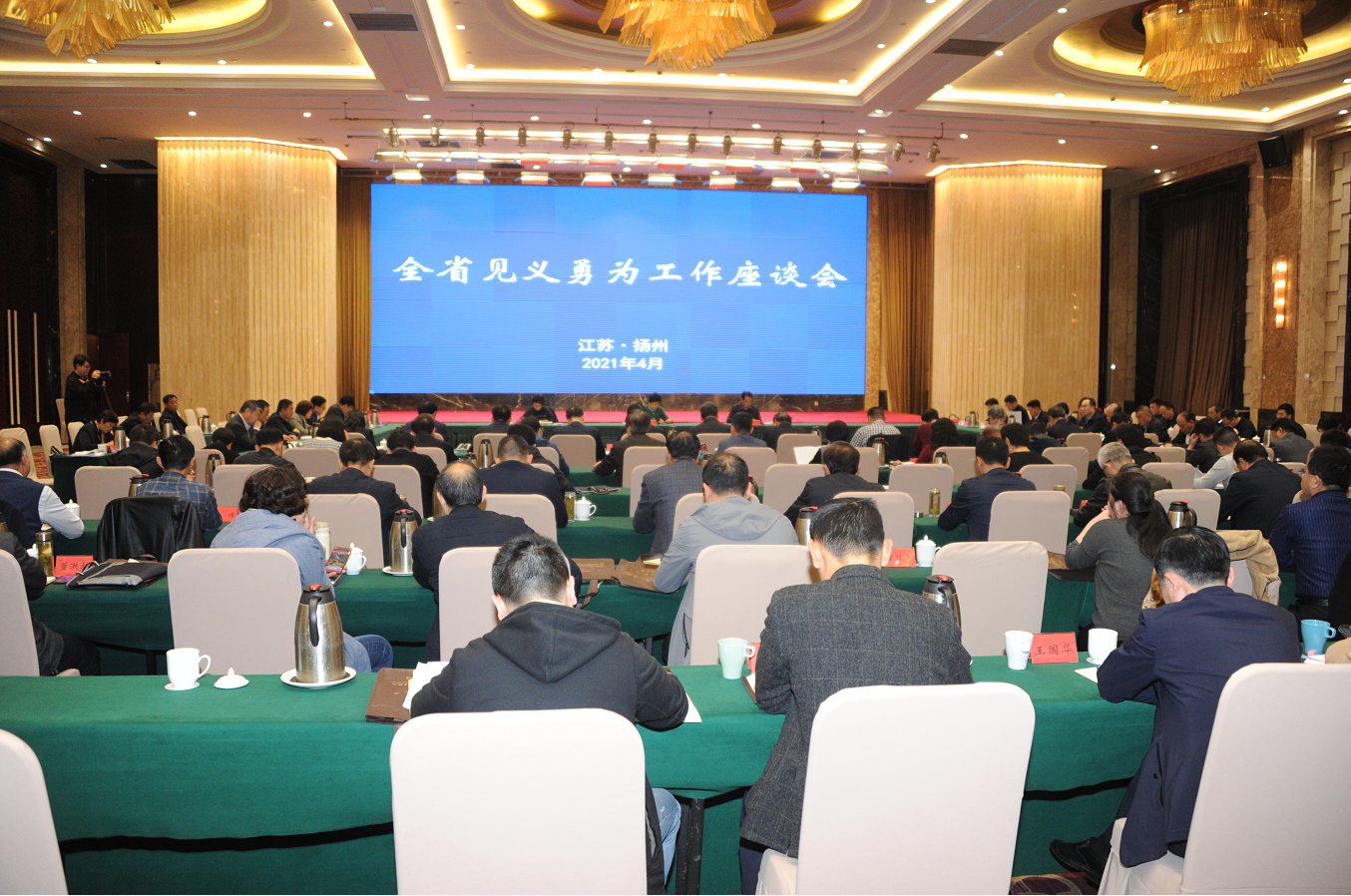 4月22日至23日,全省见义勇为工作座谈会在扬州召开,会议深入学习贯彻习近平总书记视察江苏重要讲话指示,以及省委书记娄勤俭、省长吴政隆批示要求和全省第十二届见义勇为英雄模范表彰大会精神,认真总结工作,研究举措,部署任务,进一步推进全省见义勇为工作高质量发展。省见义勇为基金会理事长弘强、省见义勇为基金会常务副理事长邵木金、省公安厅党委委员、政治部主任汤楠参加会议,扬州市副市长、公安局长宫文飞到会致辞。
