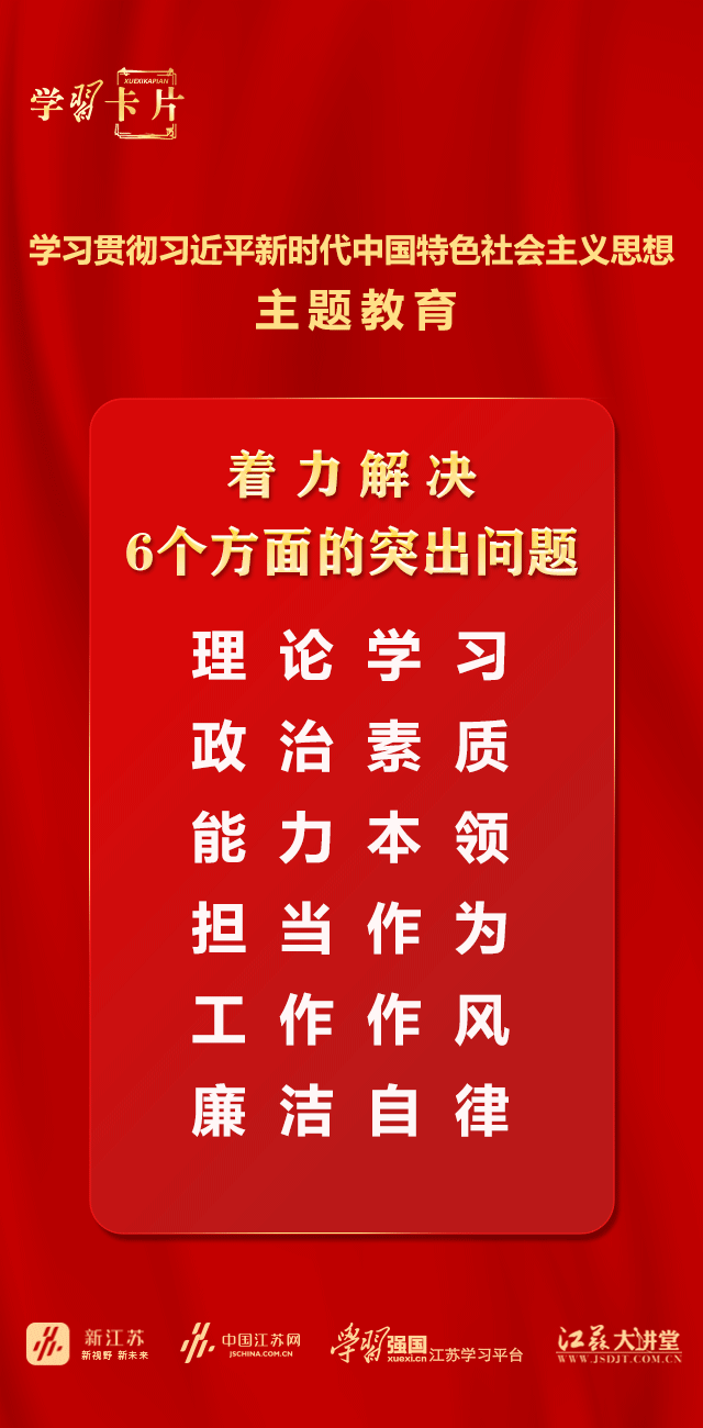 今天推出第四期:学习贯彻习近平新时代中国特色社会主义思想主题教育着力解决6个方面的突出问题。