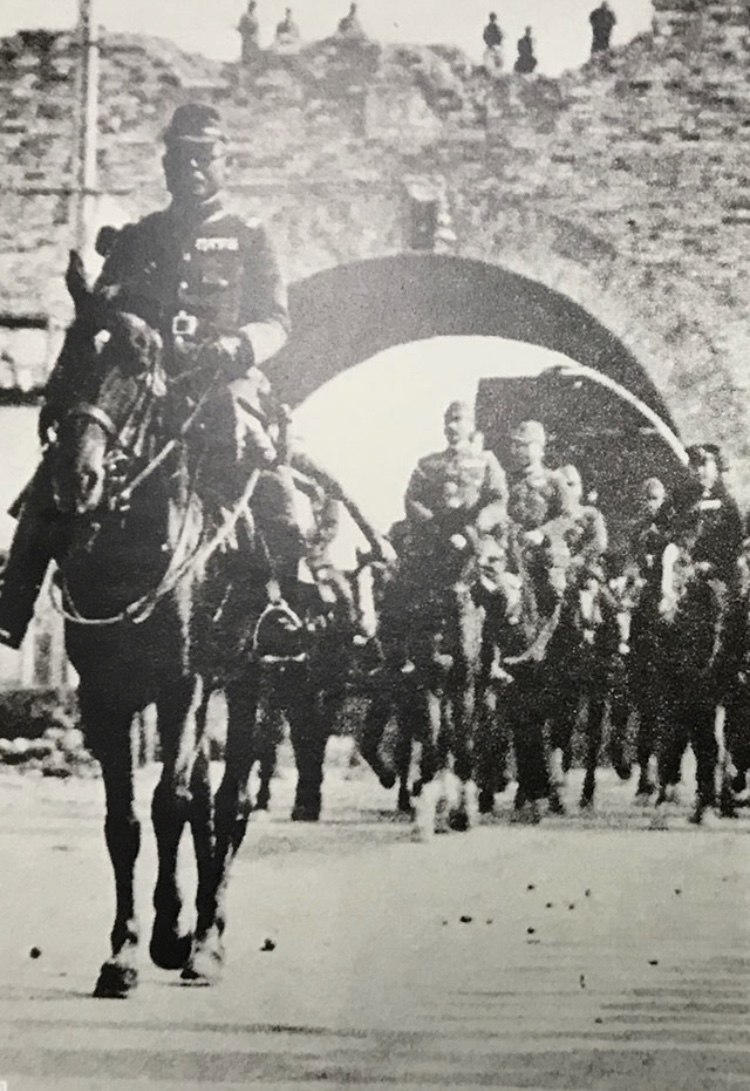 1937年12月17日,日本华东方面军司令官松井石根由汤山乘车抵达中山门后,换骑东洋马进入南京城,举行了所谓的“入城式”。
