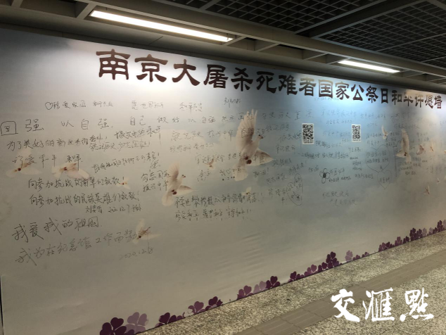 “我爱我的祖国”“牢记使命,振兴中华”“铭记历史,吾辈当自强”……12月8日上午,地铁2号线云锦路站的“和平许愿墙”已经几乎被写满了,整面墙上满满的是“祝福”。市民严女士说:“希望这个世界能够和平,国家昌盛繁荣,人们过上自己想要的生活,和爱的人,去到一个有山、有海、有爱的地方。”市民周先生表示,“希望我们的下一代能够感受一下南京曾经经历过什么,并好好学习,今后要让我们的祖国更加强大起来。”