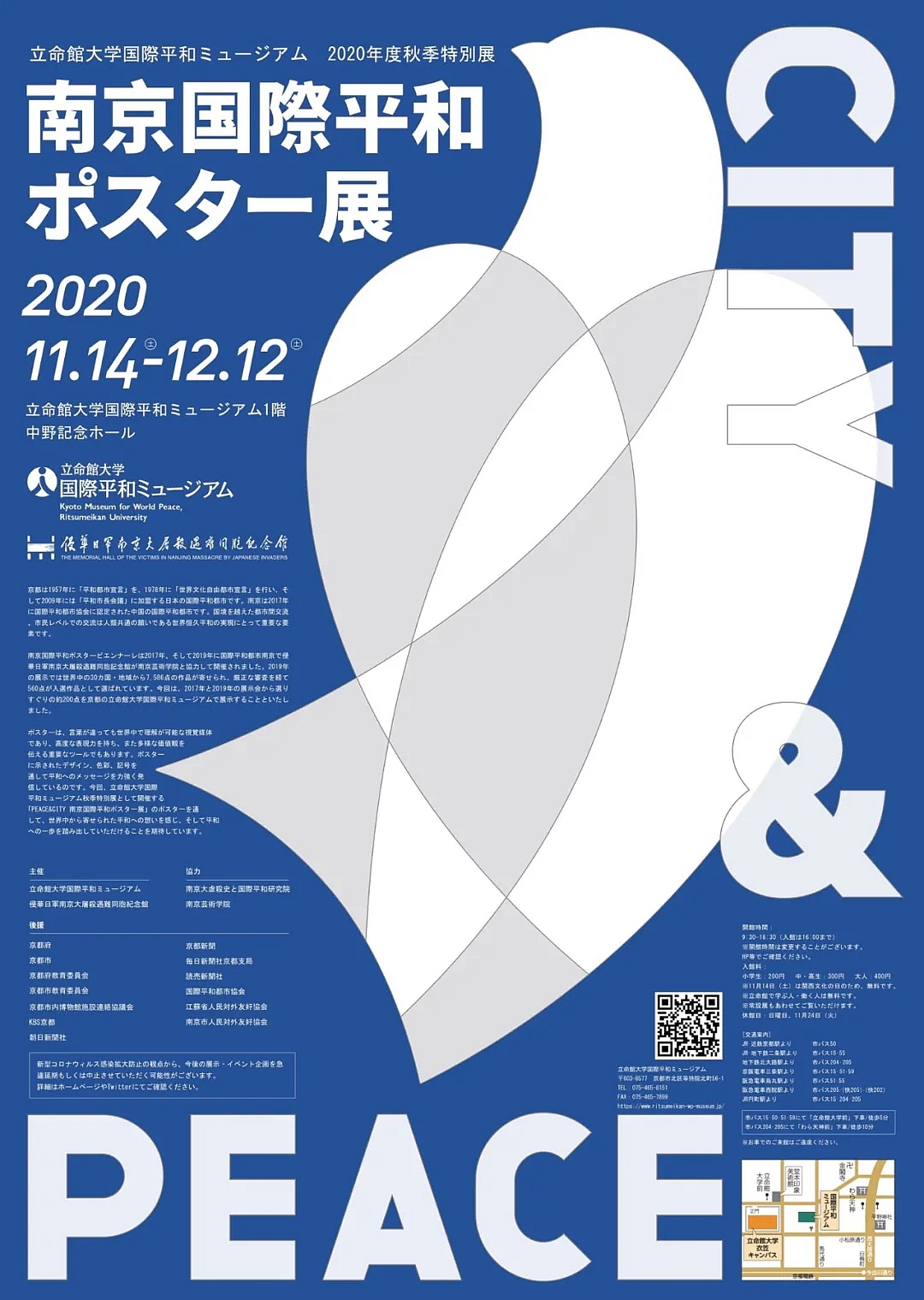 第七个国家公祭日来临之际,2020年11月14日至12月12日,南京国际和平城市海报双年展来到日本京都,为当地民众带去一堂特殊的和平课。