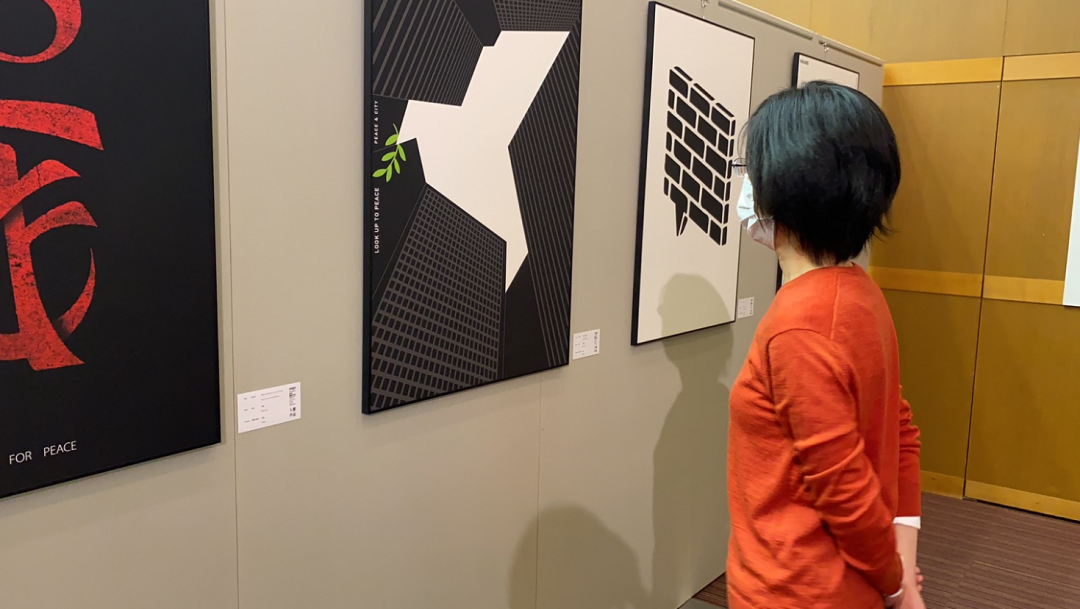 展厅位于日本立命馆大学国际和平博物馆的1楼的中野纪念会堂,共展出100幅海报。无声的海报跨越了国家、民族、语言和文化的障碍,向每一位参观者坚定地彰显立场、传递共鸣。立命馆大学国际和平博物馆馆长吾乡真一欢在展览现场说:“希望今后继续合作开展此类活动,为了世界和平共同努力。”