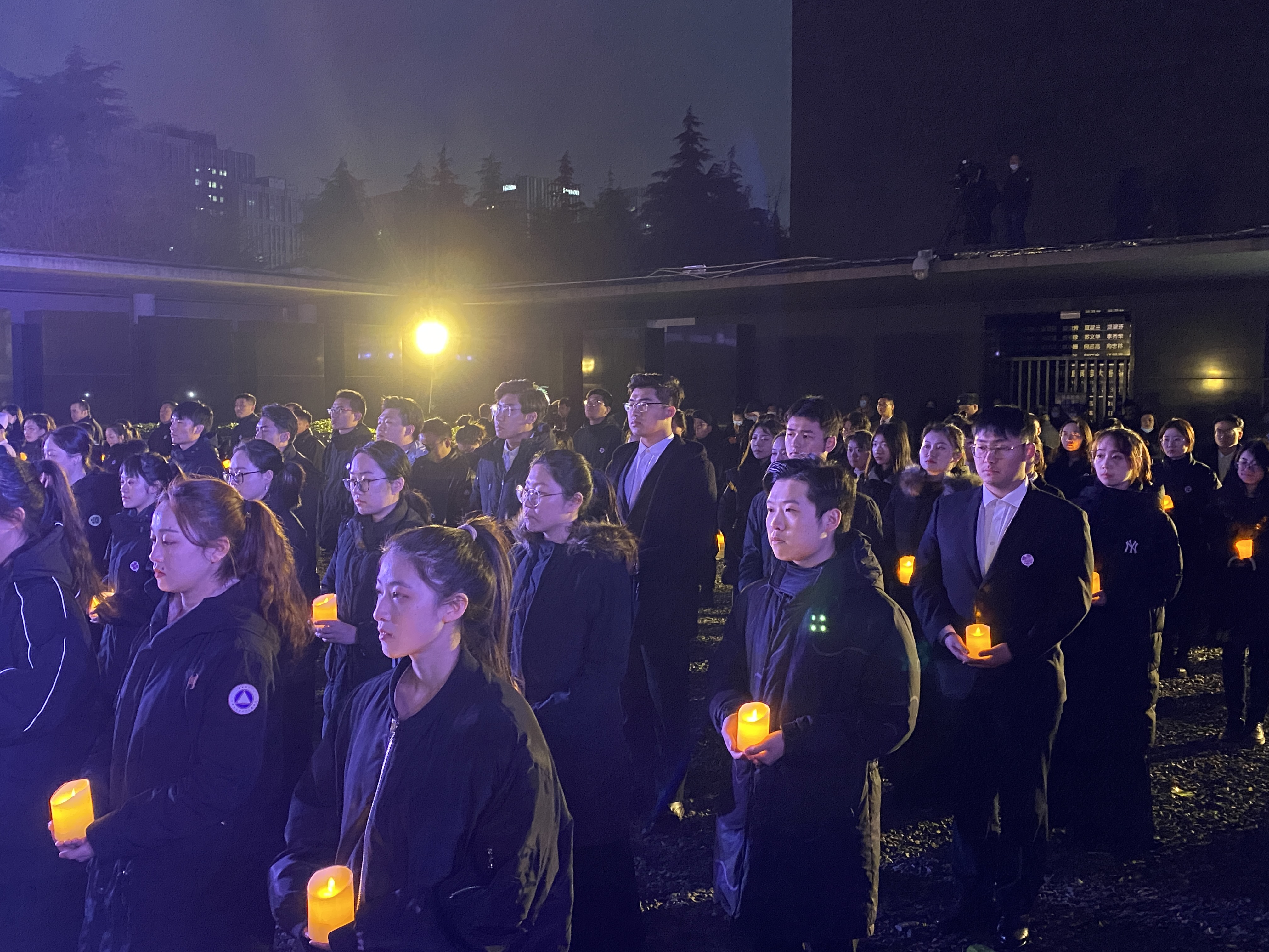 当晚,南京大屠杀幸存者、青少年学生、外国友人、医护人员以及中国僧侣等数百人集结,身着素服,手秉白烛,为死难者致哀。