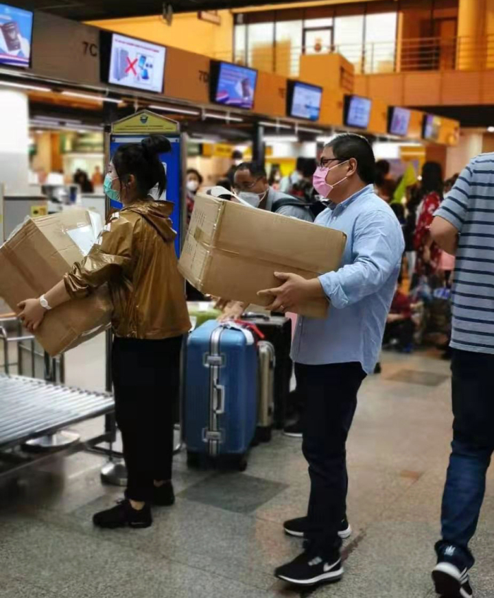 随着防控形势的不断升级,全国多个省市医院的医疗防护物资出现紧缺。为此,中泰商会在泰国筹集到146箱4150件防护服,捐赠给国内疫情防控一线的医院和医护人员。但怎么运回去,却成了难题。1月30日下午,DD3116航班即将从泰国曼谷飞往江苏南通,机上一个13人南通旅游团接到中泰商会的求助信息后,果断决定减少个人行李带上相关物资,最终,在同航班旅客的全力协助下,成功随机带回146箱防疫物资,完成这趟特殊使命。