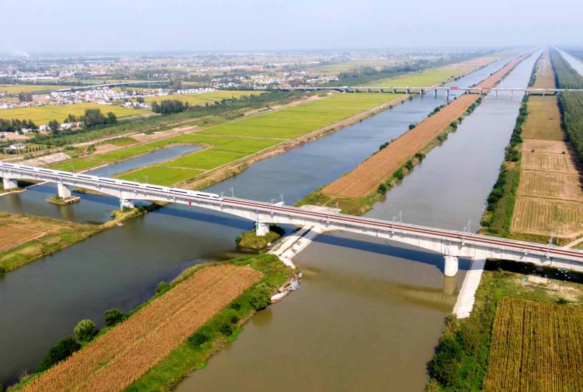 飞跃江河:青盐铁路跨淮河入海水道大桥(2021年9月)