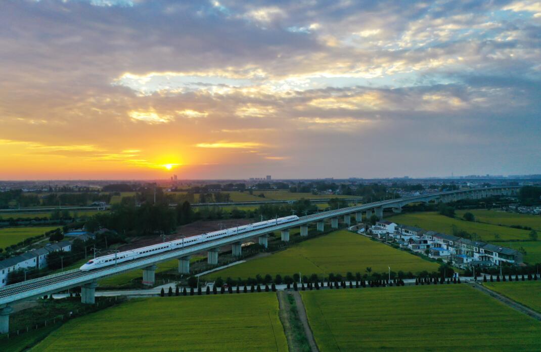 和谐霞光:徐宿淮盐铁路淮安区段(2020年10月摄)