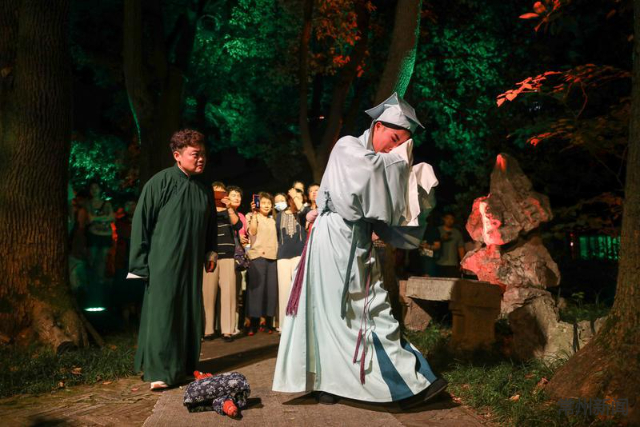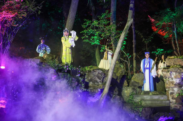 仲夏六月夜,山水花木为幕,亭台楼榭为台,拥有300年历史的锡剧与350年历史的近园相遇,在现代化灯光与舞美的助力下,常州首个沉浸式园林演艺剧目——实景版锡剧《珍珠塔》诞生。演出利用传声和光影技术,创新采用一步、一景、一幕的演绎方式,让游客跟随剧情穿行于庭院之间,做到园中有景、景中有戏,将剧目的唯美委婉推向极致。