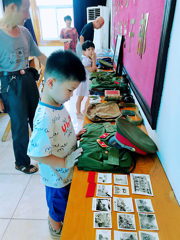 红色展览,凝聚奋进力量。老同志和少年儿童参观了老兵周泉福、王祥发、钱虎金、耿生国等同志在部队时学习、训练、工作和生活的照片,以及他们当兵时穿过的军装、戴过的军帽和用过的物品和当兵的相关资料。通过观看展览,大家进一步了解了人民军队的光辉历程,感受到了人民军队不畏艰难、勇于探索、敢于奋斗、一往无前的革命精神。