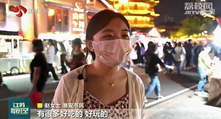 淮安市民赵女士说:“有很多好吃、好玩的,这里的风景很美。看到了游船、花灯,心情很好,一家人来这儿非常放松。”