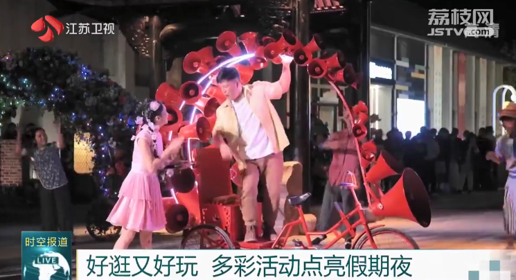 假期里,昆山周庄景区将传统彩灯与现代光影艺术相融合,美轮美奂的灯光秀,让游客流连忘返。在江阴南门地区保存最完整的传统街道--忠义街,文创、餐饮、旅游等多种业态在这里共同呈现,为城市“夜经济”注入新活力。在宿迁泗洪柳山湖景区,为期6天的乡村国潮艺术节热闹开幕。国风艺术表演与夜市、乡村游碰撞出新火花,形式多样的游玩体验吸引了上千名游客相聚于此,共赏美丽秋日风光和街景市集的浓浓烟火气。