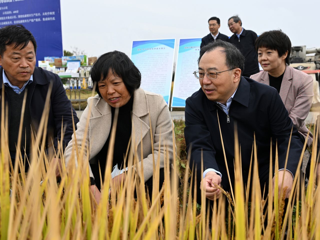 今年,全省秋粮总体呈现面积增、单产平、总产略增的良好形势,全年粮食丰收基本定局。目前,秋收秋种进入最后冲刺阶段。高邮市马棚湾生态农业基地正在边收割水稻边种植油菜,收获累累硕果、播下新的希望。吴政隆来到田边,实地察看秋收秋种情况。有机水稻生长周期多长、亩均产量多少、销售价格多少,全年收入怎么样,带动农民增收情况如何,秸秆综合利用有哪些途径,种植的油菜品种有哪些,机械播栽效率提高多少,近期降雨对墒情苗情有哪些影响?吴政隆边看边问,与种植大户深入交流。他说,要围绕满足群众高品质生活需求,坚持绿色化、特色化、品牌化,在增加绿色优质农产品供给的同时,带动农民增收,促进共同富裕。秋冬季农业生产直接关系全年粮油供应。一方面,要抓好节粮减损、粮食收购和储备等工作,优化粮食产后服务,确保应收尽收、颗粒归仓。另一方面,要狠抓秋播质量和防灾应变管理,落实好冬前管理各项措施,确保壮苗安全越冬。吴政隆指出,党的二十大报告明确了新时代新征程农业农村现代化的主攻方向,提出了全面推进乡村振兴的重大任务。要认真贯彻党的二十大决策部署,坚持农业农村优先发展,深入实施“藏粮于地、藏粮于技”战略,抓住有利时机,加强农田水利建设,加快建设旱涝保收、高产稳产“吨粮田”,全方位夯实粮食安全根基,以更大的决心、更明确的目标、更有力的举措全面推进乡村振兴,加快建设新时代鱼米之乡。