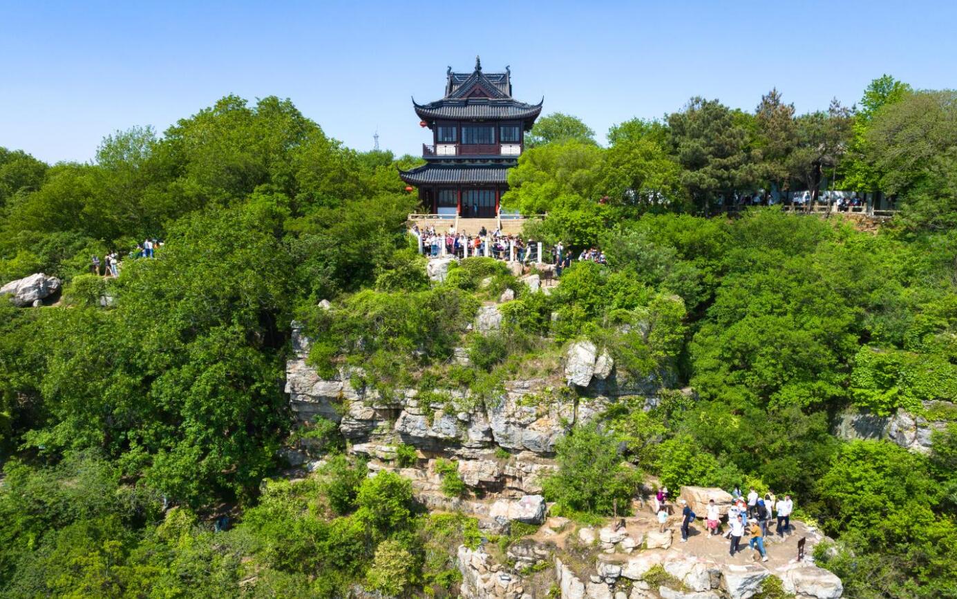 剑门奇石位于虞山之巅,其处峰峦险峻,悬崖凌空,气势雄浑,为虞山石景佳绝处。相传是春秋时期吴王夫差在此用剑将石劈开,形成两扇石门,故称“剑门奇石”。顶端有巨石三块,称“三沓石”,上石如舟,中石如几,下石如斛,犬牙相交,架于缝间,欲坠未坠。两壁巨石临崖,直立如刀削。仰视天成一线,气势磅礴,蔚为壮观;俯瞰幽谷深邃,怪石嶙峋,层峦叠嶂,故有“剑门奇石”之称,为虞山十八景中最有名的一景。