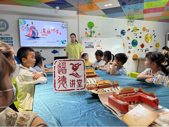 道德讲堂沁心脾。为传承和弘扬中华优秀传统文化,推动居民道德建设发展,慧湖社区筹建组开展道德讲堂活动。一首《好人就在身边》拉开了道德讲堂的序幕,动听的歌声让孩子们陶冶了情操,歌曲以身边的小事情为切入点,点滴日常的温暖、邻里之间互助,小人物大情怀,通过“唱一首歌曲、讲一段故事、诵一段经典、谈一点感悟、送一份吉祥”让大家得以加强道德建设。