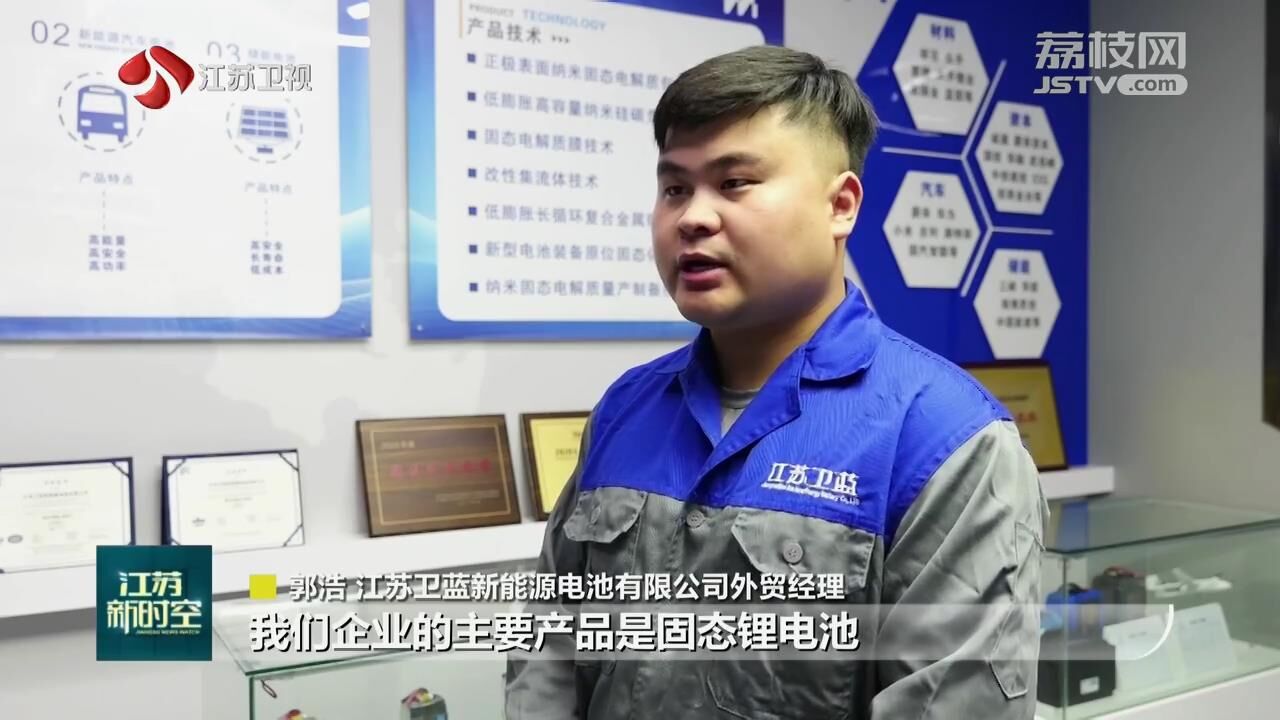 江苏卫蓝新能源电池有限公司外贸经理郭浩说:“我们企业的主要产品是固态锂电池,具有能量密度更高、电池容量更大等优势,本次固态锂电池新产品的出口,实现了科研投入到价值产出。”