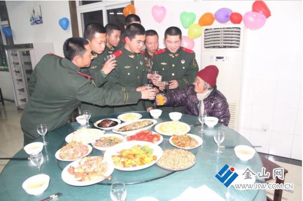 在这之后,“兵儿子”们隔三差五就去唐秀英家串门、帮助老人打扫卫生、陪老人聊天,每月请来医务人员为她检查身体,测量血压、血糖,唐秀英生病的时候,“兵儿子”们都会送来药品,炖好的鸡汤、鱼汤,并且轮流照看老人。每逢端午、重阳,官兵们还会将老人接到军营一起包粽子、看演出,让她感受亲情的温暖。