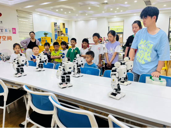 为了让青少年儿童对前沿科技有更直观的体验与了解,科院李老师带来的多款趣味机器人让大家欣喜不已。活动中,遥控操作指挥机器人、观看机器人舞蹈、机器人搭建等体验项目很受大家的欢迎,在活动中提升青少年儿童的科学兴趣与科学素养。