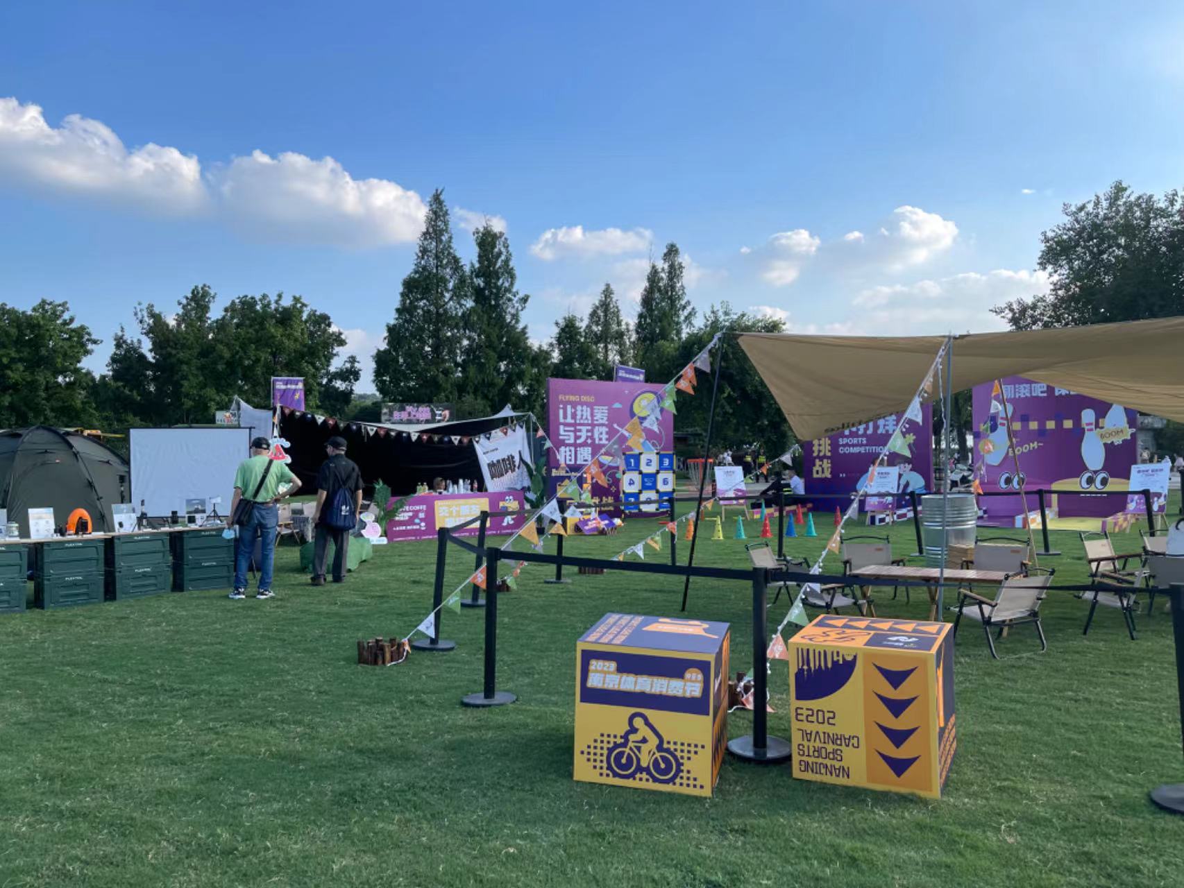 南京玄武湖畔情侣园的大草坪上,一场户外露营热闹“开摆”——这里是ISPO亚洲运动用品与时尚展(南京站)第二现场,作为本次消费节系列活动之一,展馆中的创新展品走到线下。8月4日-5日每天17:00至21:30,市民游客可在此沉浸式体验集赛事、展览、餐饮以及互动于一体的体育消费新场景。