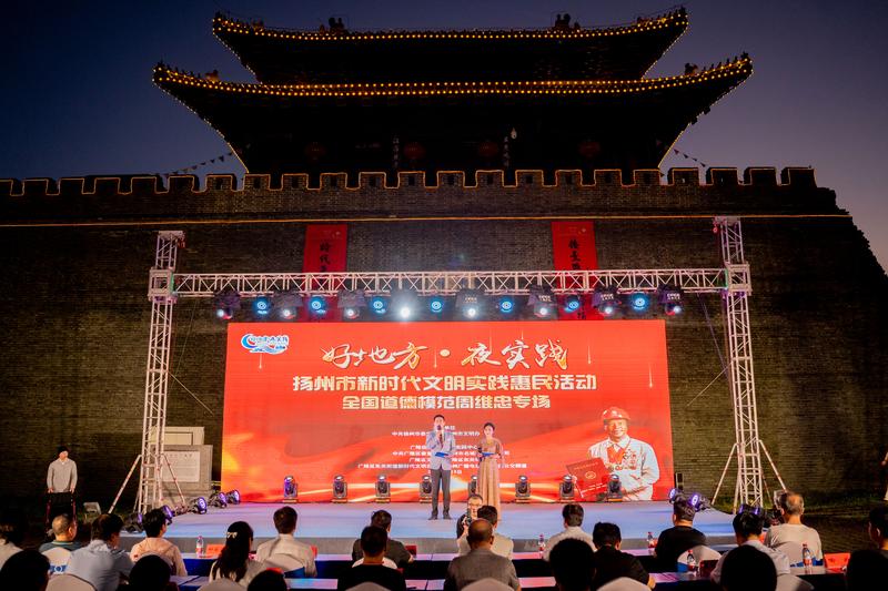 由扬州市委宣传部、市文明办创新打造的“好地方·夜实践”新时代文明实践工作品牌,当晚在扬州市广陵区东关城门广场举办全国道德模范周维忠专场,活动以视频展播、曲艺表演等形式,再现全国道德模范周维忠的感人事迹和崇高精神,传递身边可亲、可敬、可信、可学的榜样力量。山西省在扬举办的文明城市建设工作培训班全体学员现场观摩,感叹这是一场新时代文明实践“夜模式”的大戏。