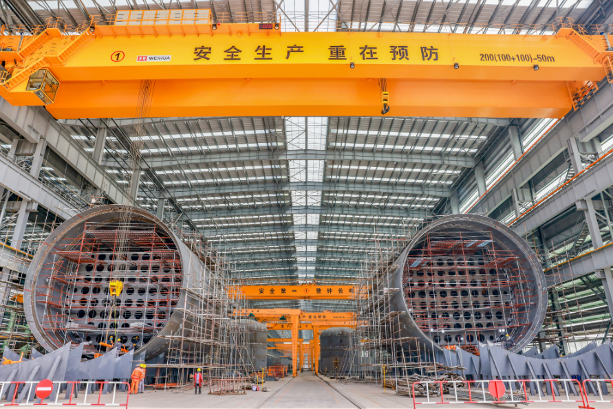 △新时代造船LNG罐体生产现场
