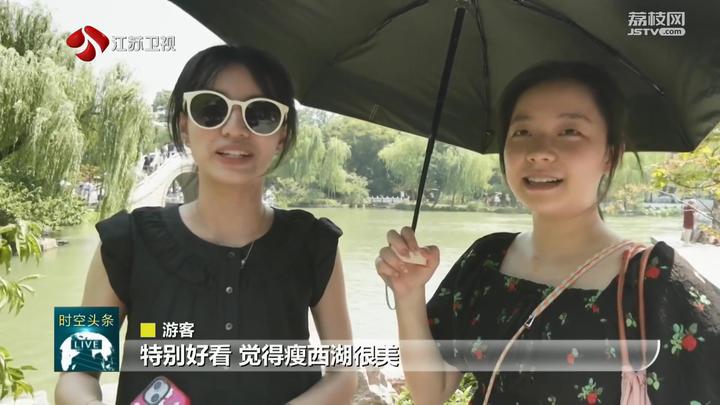 游客说:“昨天晚上游了瘦西湖,白天还再来玩一次。特别好看,觉得瘦西湖很美。”