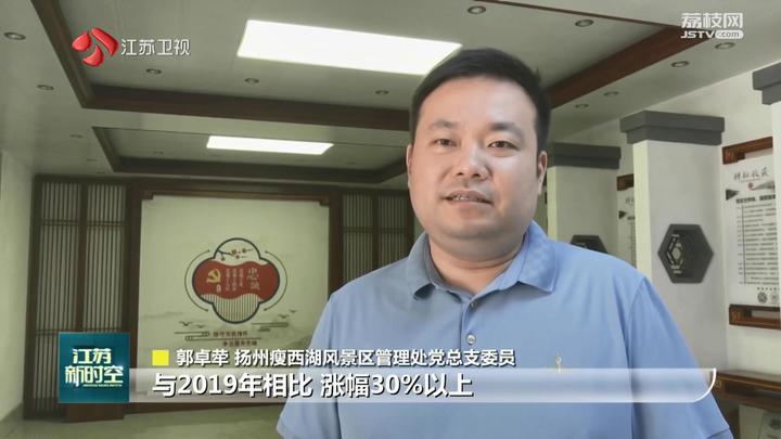 瘦西湖风景区管理处党总支委员郭卓荦说:“7月瘦西湖风景区白天接待游客量达到40万,与2019年相比,涨幅30%以上。夜游的游客量近10万,也非常火爆。”