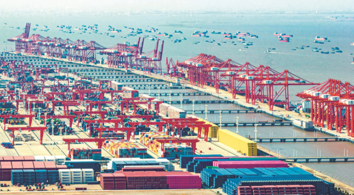 太仓港集装箱码头一派繁忙(资料图片)。计海新 摄