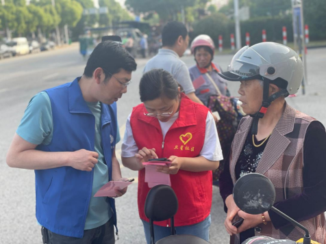 坚持党建引领,引进家庭医生。作为卫星社区组织干事的奚烨,积极拓展共建单位,与党建共建单位漕湖街道社区卫生服务中心共同开展“爱心义诊服务到家”党建共建项目。每月定期开展2次家庭医生进社区活动,为辖区居民提供血压血糖测量、保健知识科普、健康咨询服务。