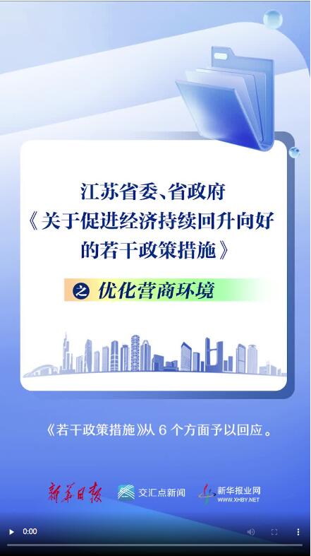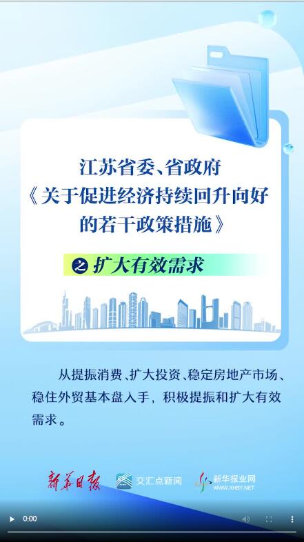 视频速览 | 促进经济持续回升向好,江苏省委省政府出台若干政策措施