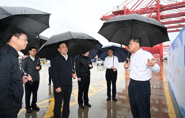 江面烟波浩渺、码头桥吊林立,苏州港太仓港区一片繁忙景象,折射出经济发展的新脉动。货物吞吐量同比增长多少,制约港口高质量发展的堵点难点还有哪些?信长星来到调度中心、集装箱码头,实地了解港口布局、多式联运、自动化运行等情况。他指出,太仓港区是“江尾海头第一港”,区位独特、地位重要。要深化与沿江沿海港口协同联动,主动对接产业链、供应链上下游企业,织密航线网络,壮大港口经济,在服务建设现代化产业体系、构建新发展格局中展现更大担当作为。