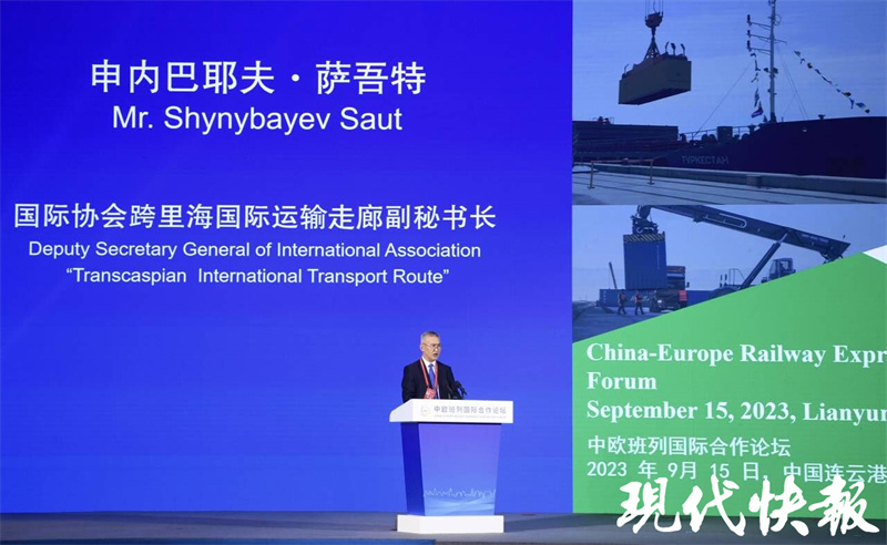 9月15日,中欧班列国际合作论坛在江苏省连云港市成功举办。论坛期间,跨里海国际运输走廊国际协会副秘书长萨吾特在接受记者采访时表示,作为中哈(连云港)物流合作基地首位来自哈方的负责人,他表示自己很幸运能够成为中哈(连云港)物流合作基地的见证者和直接参与者。