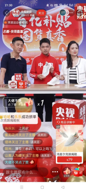 “上海制皂的董事长夸361°,孔凤春给大家安利鸿星尔克,这场‘错配’的直播让不少网友眼前一亮。”拼多多百亿补贴相关负责人表示,“今年以来,平台加速向高质量发展转型,引导高质量消费是重点工作之一。通过特色直播及百亿补贴、万人团等资源倾斜,我们希望让更多消费者了解优质国货,爱上中国制造,助力国货长红,推动消费提振。”