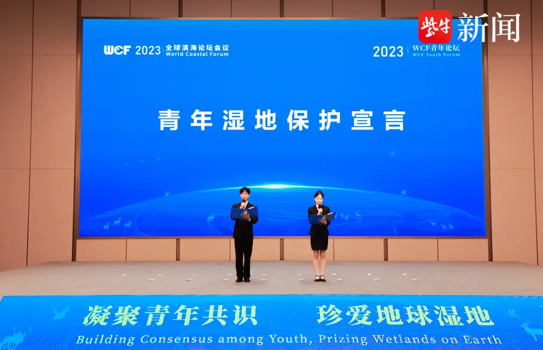 青年代表宣读《青年湿地保护宣言》
