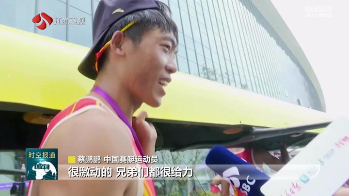 中国赛艇运动员蔡鹏鹏说:“很激动的,兄弟们都很给力,为国家争了一块金牌。明天全力以赴,争取再添一块金牌。”