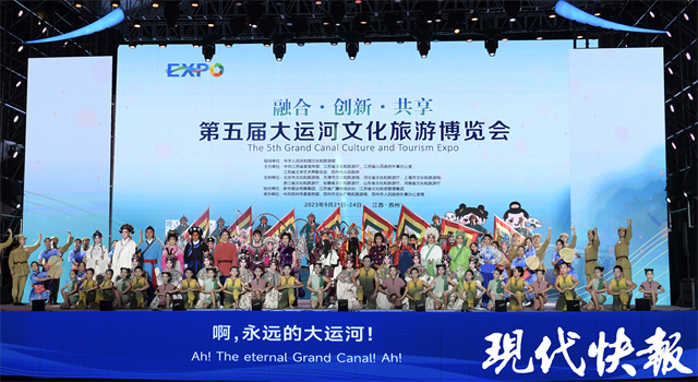 本届运博会进一步推动文化与旅游深度融合,通过展览、演出、论坛等活动,生动呈现千年运河的风土人情和时代变迁,多维度展现了江苏文旅高水平融合、高质量发展的实践成果。9月21日晚间的开幕式演出《千年运河•戏曲荟萃》,以戏曲为主题,遴选运河沿线8省市、共11个戏曲剧种,15位荣获“梅花奖”的著名演员轮番登场,戏妆戏服联袂展演,展现运河沿线人民群众丰富多彩的文艺生活。运河美食文化展现场邀请了百余家企业单位,20位非遗美食大师,现场展销500余种产品。
