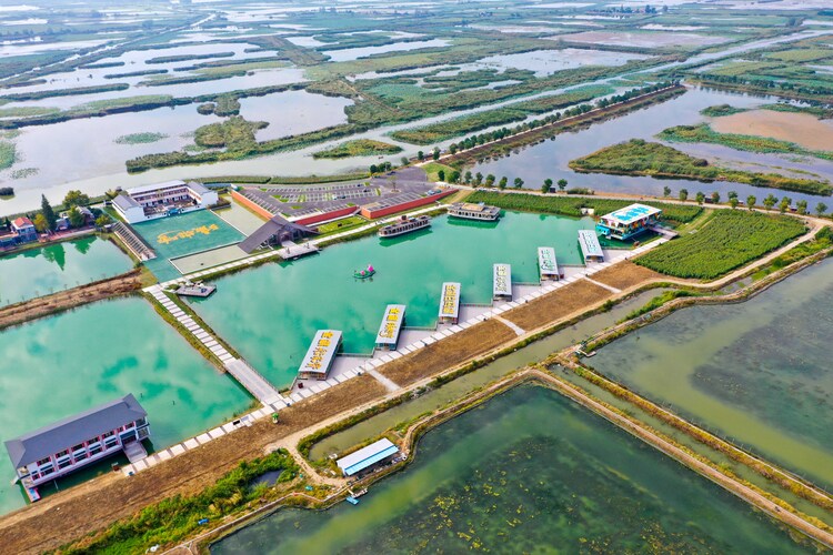 秋日的白马湖向日葵故事景区,粉黛乱子草中、成片的向日葵里、大片的绿地花海边都有如织的游人拍照打卡。在湖畔旺屯,一栋栋白墙灰瓦的楼房充满传统韵味,小桥流水人家好似田园牧歌,一河之隔的杉荷里,游客服务中心、电子商务产业园、精品民宿、各色餐饮、农副产品展览中心、假山流水的古典园林等都令人赏心悦目,不由驻足。在位于前锋镇白马湖村的“渔乐湾”,快艇飞驰激起朵朵白色浪花,让人心旷神怡。伴随着华灯初上,白马湖畔渔船改造的餐饮集市亮起了红灯笼,星星渔火与大红灯笼倒映在水中,令人既能感受到“清淮八十里,临流半酒家”的热闹,也能感受到“舟行未见初更月,一点渔灯落远汀”的纯朴。