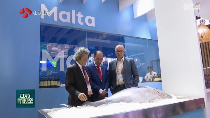 江苏台记者范洁萍:在第六届进博会的国家展区,今年这里一共有69个国家和3个国际组织亮相展示,其中有64个是共建“一带一路”国家。各国都带来了王牌产品,在这里可以感受到浓浓的异域风情,有俄罗斯的机械产品,还有泰国的美食产品。在马耳他国家展台,记者还遇到了一位老朋友,他就是前不久江苏广电总台大型全媒体跨国新闻行动“大道之行·筑梦丝路”海外报道组,采访过的马耳他水产协会首席执行官戈德。